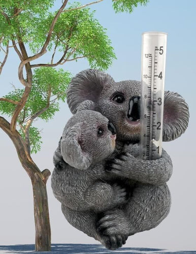 Koala Mum & Joey Rain Gauge - Cute Glass Rain Gauge, Outdoor Garden Decoration