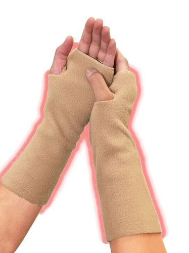 Knitted Long Hand/Arm Fleece Fingerless Gloves Warmers Musicians Typing - Camel