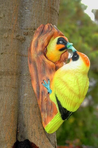 Mother Bird Feeding Baby Woodpecker Garden Decoration - Polyresin Tree Sculpture